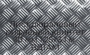 - Лист дюралевый рифленый квинтет 10 мм 1.25х3.1 м ВД1АМ N97488