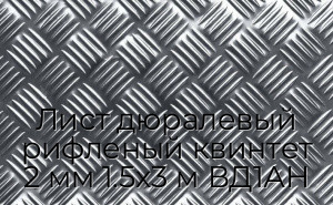 Лист дюралевый рифленый квинтет 2 мм 1.5х3 м ВД1АН - продажа оптом и в розницу по цене от 6027 руб. в Москве. Доставка по Москве и всей России