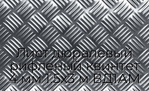 - Лист дюралевый рифленый квинтет 4 мм 1.5х3 м ВД1АМ N97468