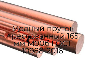 Компания «Арион-Металл» предлагает широкий ассортимент Медный пруток прессованный 165 мм М00б ГОСТ 10988-2016. В наличии имеются изделия разных диаметров и марок меди. Мы обеспечиваем поставки крупными партиями с оперативной доставкой в Москву и регионы России.