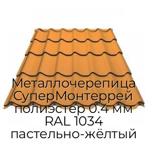 - Металлочерепица СуперМонтеррей полиэстер 0.4 мм RAL 1034 пастельно-жёлтый N4238