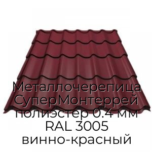 - Металлочерепица СуперМонтеррей полиэстер 0.4 мм RAL 3005 винно-красный N4242