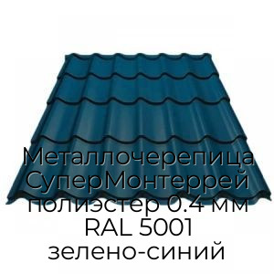- Металлочерепица СуперМонтеррей полиэстер 0.4 мм RAL 5001 зелено-синий N4246