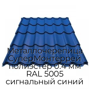- Металлочерепица СуперМонтеррей полиэстер 0.4 мм RAL 5005 сигнальный синий N4248