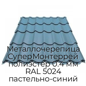 - Металлочерепица СуперМонтеррей полиэстер 0.4 мм RAL 5024 пастельно-синий N4250