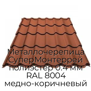 - Металлочерепица СуперМонтеррей полиэстер 0.4 мм RAL 8004 медно-коричневый N4259