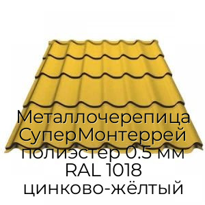- Металлочерепица СуперМонтеррей полиэстер 0.5 мм RAL 1018 цинково-жёлтый N4276