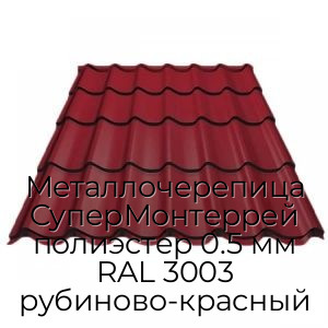 Металлочерепица СуперМонтеррей полиэстер 0.5 мм RAL 3003 рубиново-красный - продажа оптом и в розницу по цене от 607 руб. в Москве. Доставка по Москве и всей России
