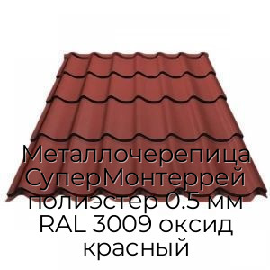 Металлочерепица СуперМонтеррей полиэстер 0.5 мм RAL 3009 оксид красный - продажа оптом и в розницу по цене от 606 руб. в Москве. Доставка по Москве и всей России