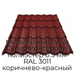 - Металлочерепица СуперМонтеррей полиэстер 0.5 мм RAL 3011 коричнево-красный N4286