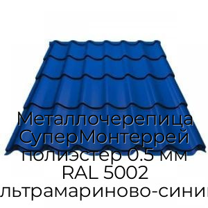 - Металлочерепица СуперМонтеррей полиэстер 0.5 мм RAL 5002 ультрамариново-синий N4289