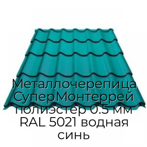 - Металлочерепица СуперМонтеррей полиэстер 0.5 мм RAL 5021 водная синь N4291
