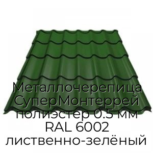Металлочерепица СуперМонтеррей полиэстер 0.5 мм RAL 6002 лиственно-зелёный - продажа оптом и в розницу по цене от 628 руб. в Москве. Доставка по Москве и всей России