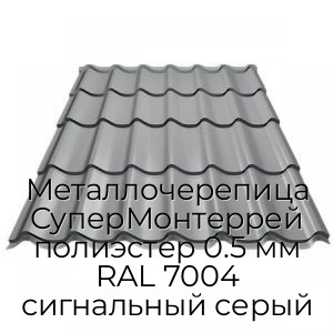 - Металлочерепица СуперМонтеррей полиэстер 0.5 мм RAL 7004 сигнальный серый N4297