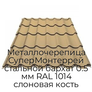 Металлочерепица СуперМонтеррей стальной бархат 0.5 мм RAL 1014 слоновая кость - продажа оптом и в розницу по цене от 665 руб. в Москве. Доставка по Москве и всей России