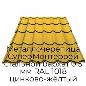 - Металлочерепица СуперМонтеррей стальной бархат 0.5 мм RAL 1018 цинково-жёлтый N4311