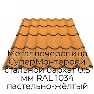 - Металлочерепица СуперМонтеррей стальной бархат 0.5 мм RAL 1034 пастельно-жёлтый N4312