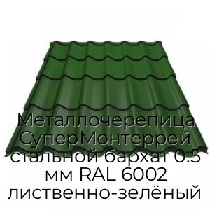 - Металлочерепица СуперМонтеррей стальной бархат 0.5 мм RAL 6002 лиственно-зелёный N4331