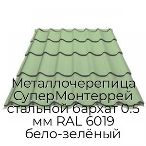 - Металлочерепица СуперМонтеррей стальной бархат 0.5 мм RAL 6019 бело-зелёный N4333