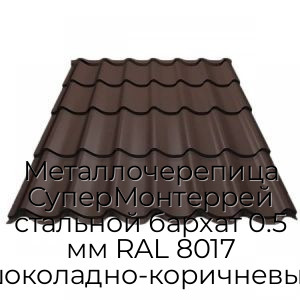 - Металлочерепица СуперМонтеррей стальной бархат 0.5 мм RAL 8017 шоколадно-коричневый N4340