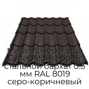 - Металлочерепица СуперМонтеррей стальной бархат 0.5 мм RAL 8019 серо-коричневый N4341