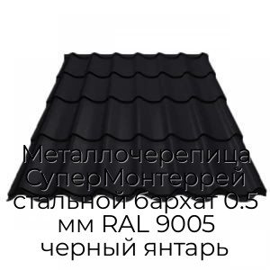 - Металлочерепица СуперМонтеррей стальной бархат 0.5 мм RAL 9005 черный янтарь N4345