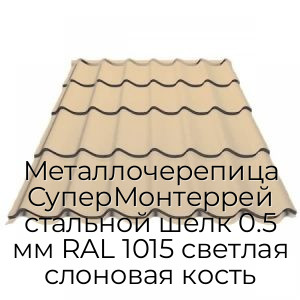 - Металлочерепица СуперМонтеррей стальной шелк 0.5 мм RAL 1015 светлая слоновая кость N4348