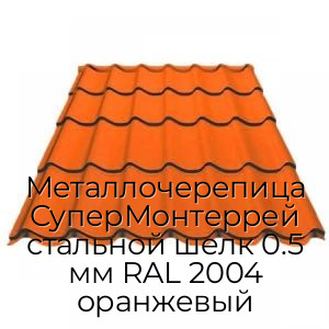 - Металлочерепица СуперМонтеррей стальной шелк 0.5 мм RAL 2004 оранжевый N4355