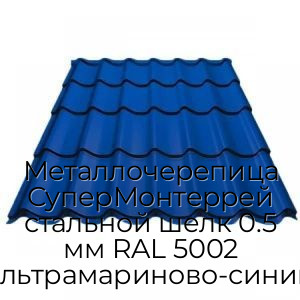 - Металлочерепица СуперМонтеррей стальной шелк 0.5 мм RAL 5002 ультрамариново-синий N4365