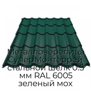 - Металлочерепица СуперМонтеррей стальной шелк 0.5 мм RAL 6005 зеленый мох N4372