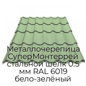 Металлочерепица СуперМонтеррей стальной шелк 0.5 мм RAL 6019 бело-зелёный - продажа оптом и в розницу по цене от 770 руб. в Москве. Доставка по Москве и всей России