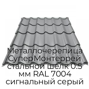 Металлочерепица СуперМонтеррей стальной шелк 0.5 мм RAL 7004 сигнальный серый - продажа оптом и в розницу по цене от 776 руб. в Москве. Доставка по Москве и всей России