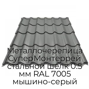 Металлочерепица СуперМонтеррей стальной шелк 0.5 мм RAL 7005 мышино-серый - продажа оптом и в розницу по цене от 779 руб. в Москве. Доставка по Москве и всей России