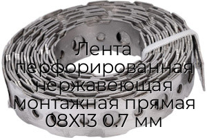 Лента перфорированная нержавеющая монтажная прямая 08Х13 0.7 мм представляет собой перфорированную ленту из нержавеющей стали, используемую в инженерных и технологических конструкциях различного назначения.
