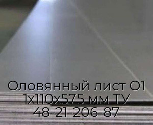 - Оловянный лист О1 1х110х575 мм ТУ 48-21-206-87 N104271
