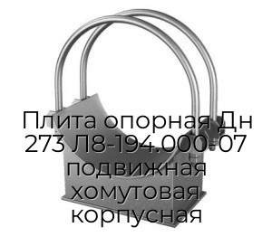Плита опорная Дн 273 Л8-194.000-07 подвижная хомутовая корпусная используют при монтаже и ремонте инженерных сетей, когда требуется повторяемость размеров и возможность точного согласования по документации.