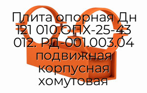 Плита опорная Дн 121 010.ОПХ-25-43 012. РД-001.003.04 подвижная корпусная хомутовая используют на объектах монтажа и ремонта для того, чтобы распределить нагрузку и обеспечить стабильную работу опорного узла.