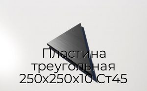 Треугольная пластина 250х250 мм представляет собой плоский лист металла толщиной 10 мм. Изготавливается из стали Ст45.