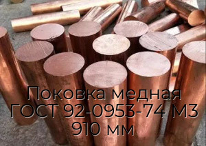 Благодаря размеру 910 мм, поковка идеально подходит для дальнейшей механической обработки и использования в деталях, требующих повышенной точности и надежности. Изготовлена из медного сплава М3 и соответствует стандарту ГОСТ 92-0953-74, что гарантирует стабильные эксплуатационные характеристики и высокое качество продукции.