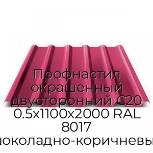 - Профнастил окрашенный двусторонний С20 0.5х1100х2000 RAL 8017 шоколадно-коричневый N19994