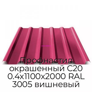 - Профнастил окрашенный С20 0.4х1100х2000 RAL 3005 вишневый N19999