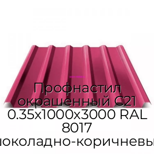 Профнастил окрашенный С21 0.35х1000х3000 RAL 8017 шоколадно-коричневый - продажа оптом и в розницу по цене от 928 руб. в Москве. Доставка по Москве и всей России