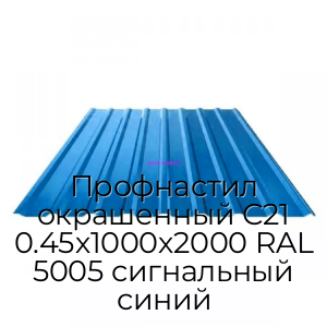 Профнастил окрашенный С21 0.45х1000х2000 RAL 5005 сигнальный синий - продажа оптом и в розницу по цене от 484 руб. в Москве. Доставка по Москве и всей России