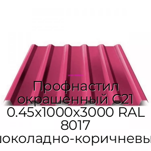 Профнастил окрашенный С21 0.45х1000х3000 RAL 8017 шоколадно-коричневый - продажа оптом и в розницу по цене от 538 руб. в Москве. Доставка по Москве и всей России
