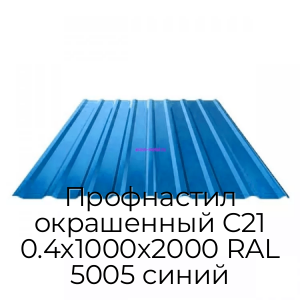 Профнастил окрашенный С21 0.4х1000х2000 RAL 5005 синий - продажа оптом и в розницу по цене от 592 руб. в Москве. Доставка по Москве и всей России