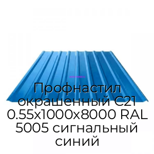 Профнастил окрашенный С21 0.55х1000х8000 RAL 5005 сигнальный синий - продажа оптом и в розницу по цене от 1051 руб. в Москве. Доставка по Москве и всей России
