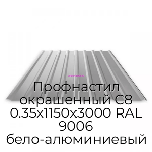Профнастил окрашенный С8 0.35х1150х3000 RAL 9006 бело-алюминиевый - продажа оптом и в розницу по цене от 375 руб. в Москве. Доставка по Москве и всей России