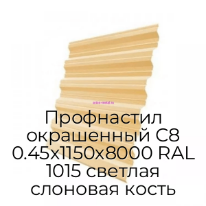 - Профнастил окрашенный С8 0.45х1150х8000 RAL 1015 светлая слоновая кость N19369