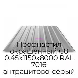 - Профнастил окрашенный С8 0.45х1150х8000 RAL 7016 антрацитово-серый N19374