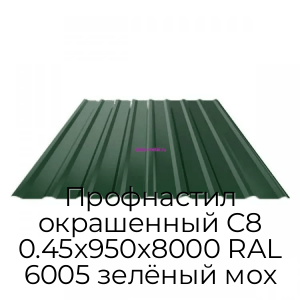 - Профнастил окрашенный С8 0.45х950х8000 RAL 6005 зелёный мох N19414